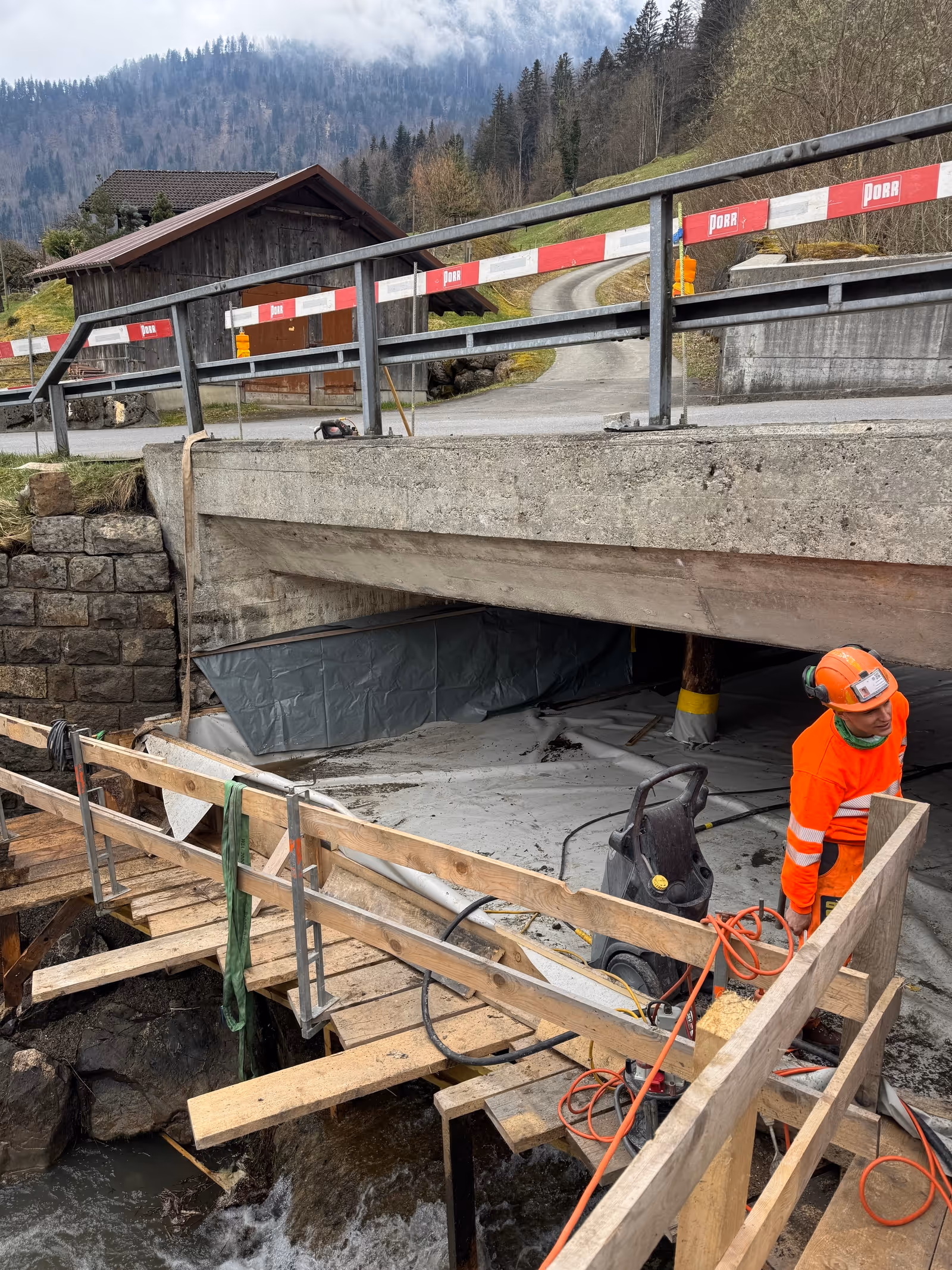 Instandsetzung Brücke mit Ersatz eines Hauptunterzugs, Betoninstandsetzung und Instandsetzung der Natursteinmauerwerke. Neuerstellung der Abdichtung, Gussasphalt, Belag und Leitschranken. Es ist eine maximale Totalsperrung von zwei Wochen vorgesehen.