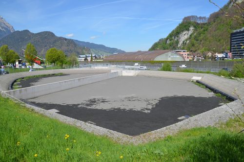 Unterirdische Einstellhalle im Grundwasser. Hoch komplexe Baugrube mit artesisch gespanntem Grundwasserspiegel und geringmächtiger Sperrschicht. Regulierung unteres Grundwasservorkommen mit Filterbrunnen und detaillierter Überwachung. Baugrubenabschluss mit Spundwänden, teilweise gespriesst.