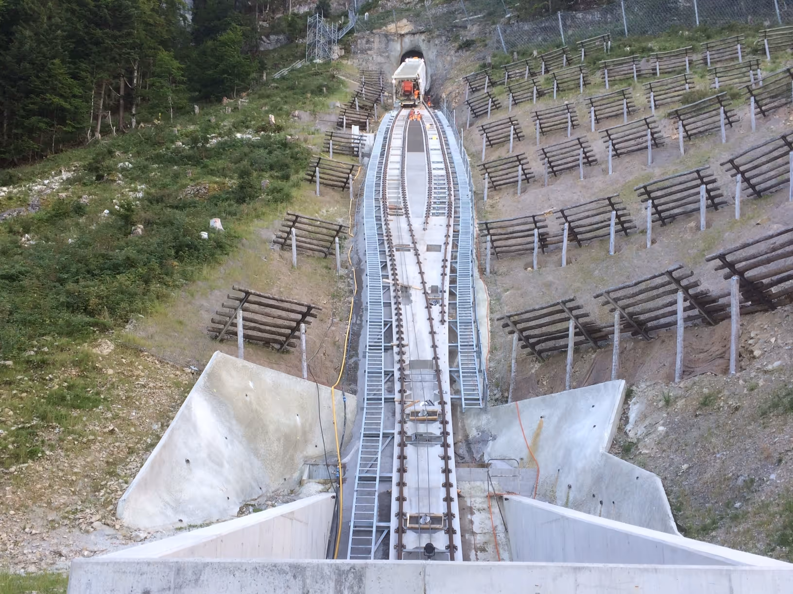 Neubau Trasse Stoosbahn inkl. Massnahmen gegen Naturgefahren, erstellen von diversen Steinschlagschutznetzen, sowie Erddämmen Rempar Grischun Werke sowie Dreibeinböcke gegen Schneegleiten ca. 3’500 m2 Netzabdeckung auf Felsoberflächen