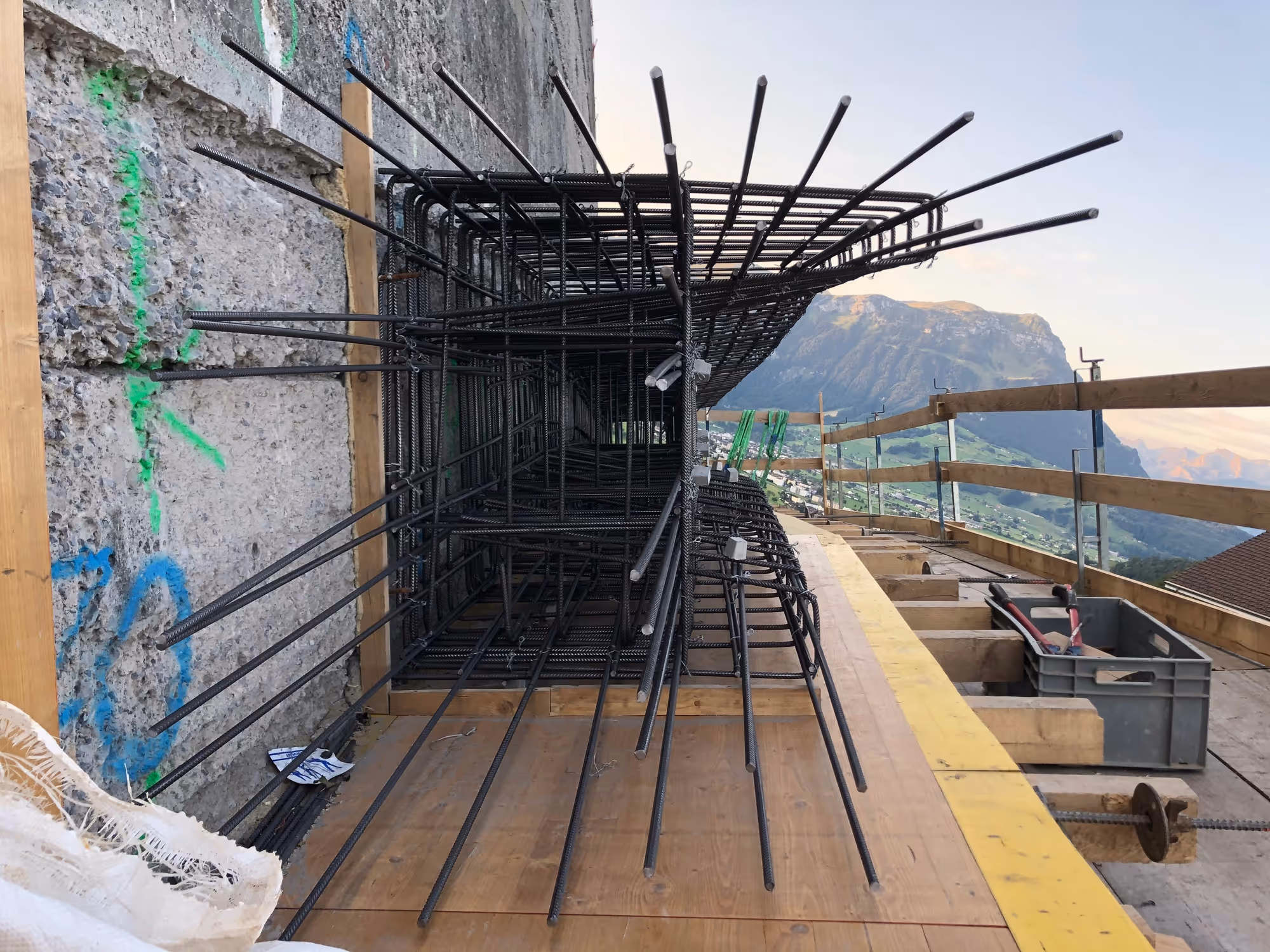 Beim Alpine SPA wurde die Tragstruktur des ehemaligen Gebäude umgebaut und grosszügig erweitert. Dabei waren zahlreiche Unterfangungen, Spezialaushübe und unkonventionelle Sicherungen der Tragstruktur erforderlich. Zudem wurde ein Stollen unter dem bestehenden Gebäude erstellt.
